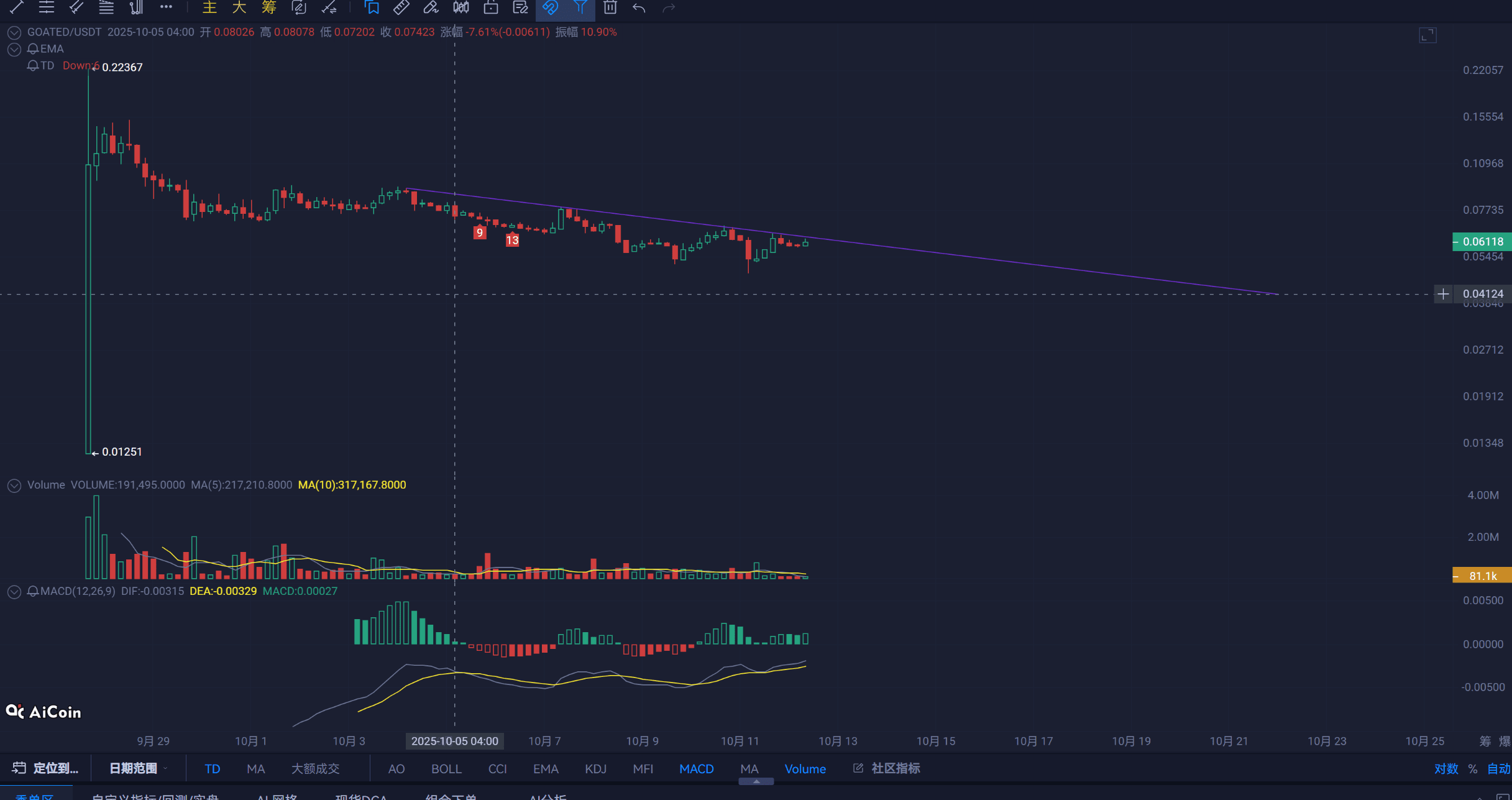GOATED:幣安阿爾法板塊 流通市值不到一千萬好像, 一直沒拉過 昨天大崩盤的時候基本沒跌。最起碼說明有人在護盤 搞一下 短期有走強跡象 壓力 0.065-0.068圖5