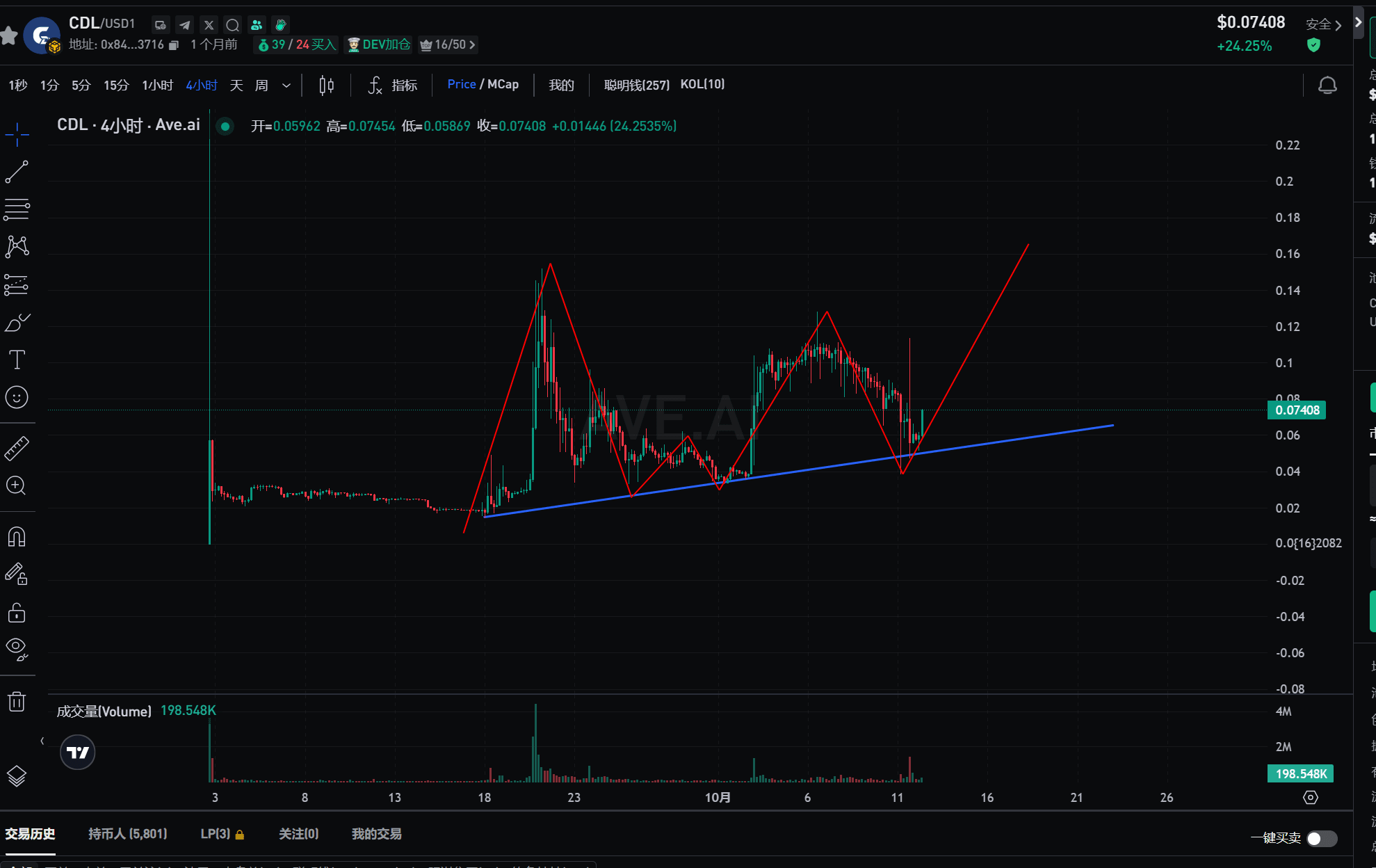 CDL:支撐位置附近反彈 主力是一個高控盤的主力 格局有多大就不清楚 但是支撐破了建議走人 不破可以格局一下 上幣安現貨或者是永續。圖4