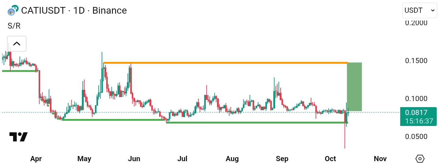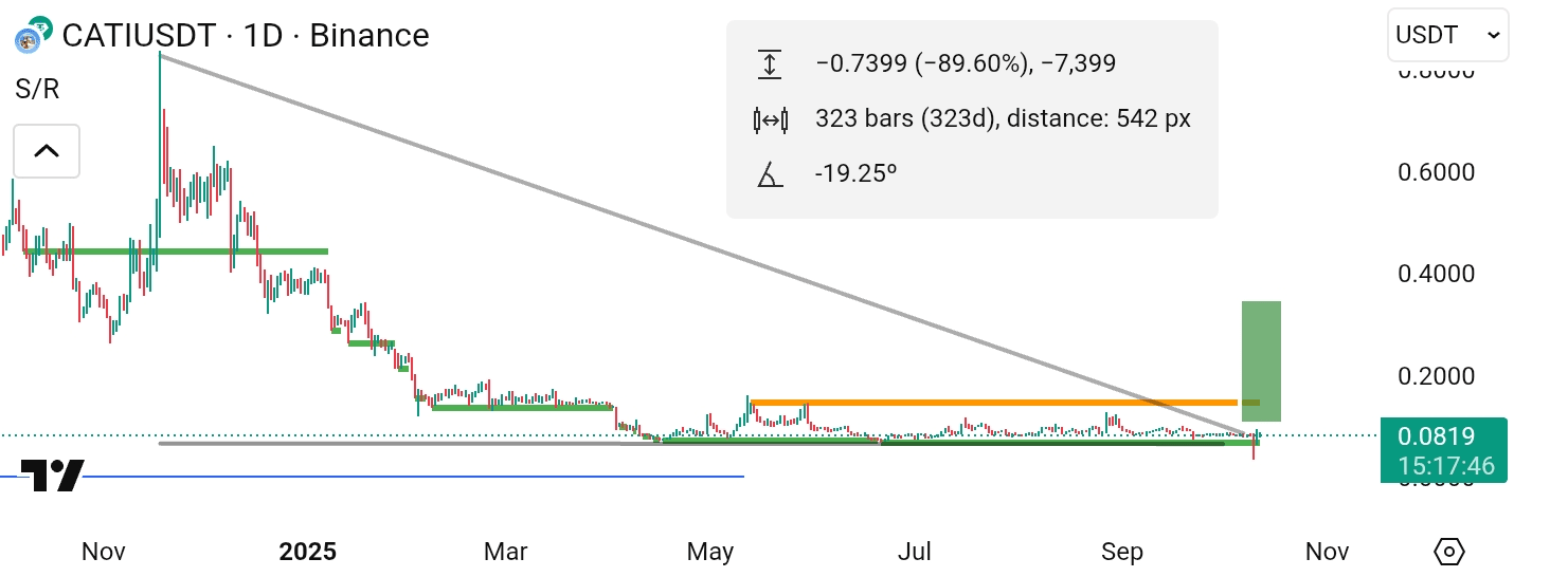 $CATI 在慘烈的 -89% 崩盤📉之後,現在顯示出看漲背離🦬。
