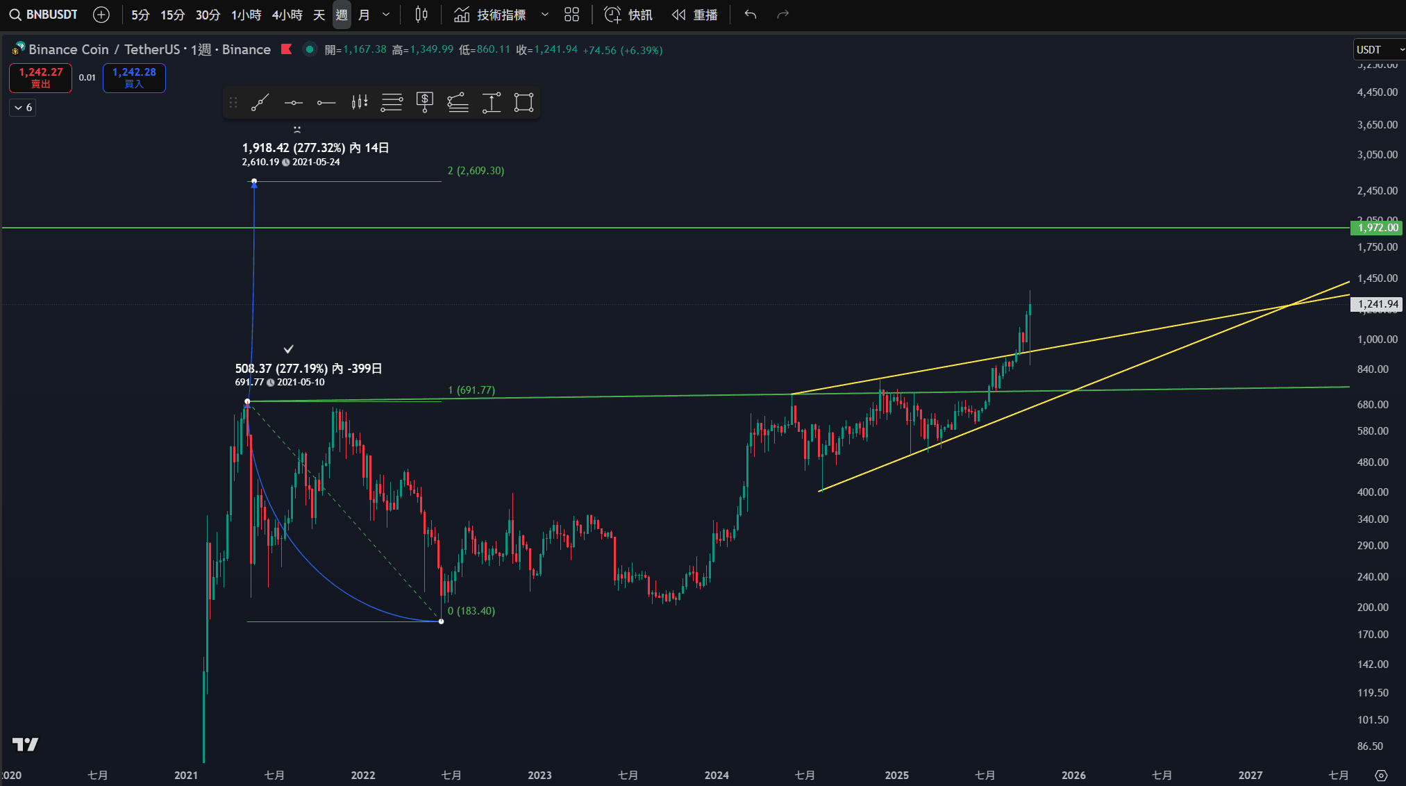 把一部分停損後的現金打進$BNB $SOL $ETH ,因為主流幣都屬健康回調,沒有超出預期外的跌幅,(這邊特別注意XRP走擴散三角形態,洗盤劇烈)