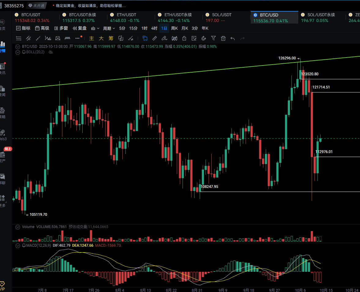 $BTC 好鬱悶,心態崩了,太貪了,昨天早上我發文說不能空,4小時線12點收線後帶長下影且收在110384上方可以做多。收線後完美符合,我就掛的110384,沒回踩唉,夜裏醒來一看中陽線倍量突破頸線了,又掛的頸線位等着回踩,又沒回踩,唉難受死了。這一大波利潤啊,日線最低要反彈到121662。每次行情大部分都能判斷對,要麼不敢上大倉位,要麼追求完美點位錯過行情,要吐血了。還是說回到盤面吧。
