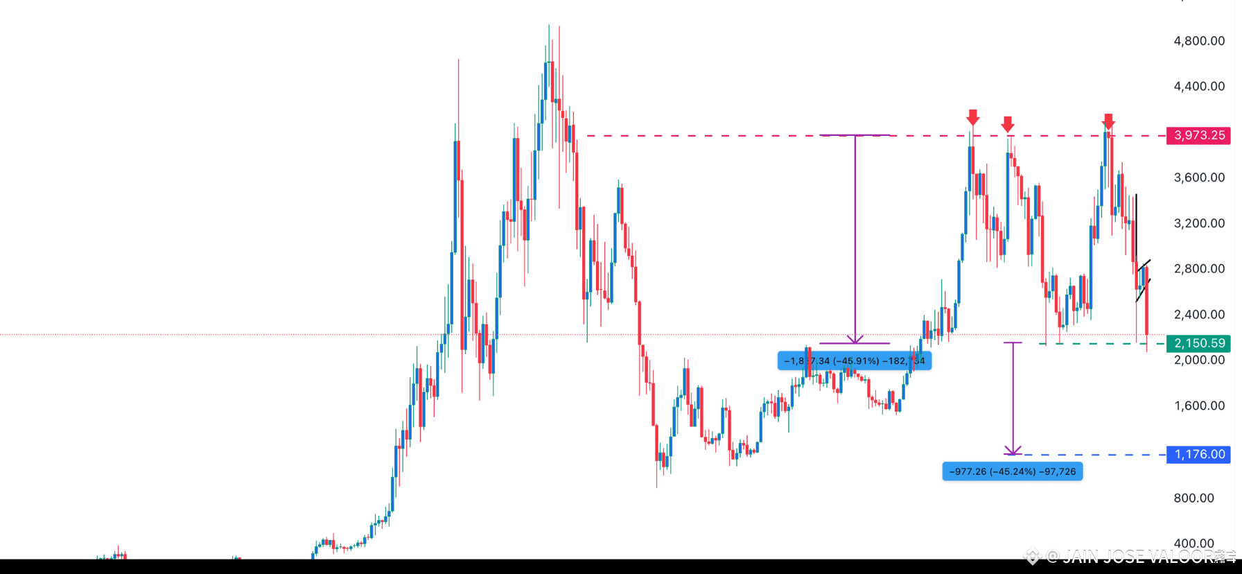 Senior crypto analyst Jain Jose Valooran shared on the Binance Square platform that if Ethereum fails to hold above $4,000, a sharp correction could be imminent.