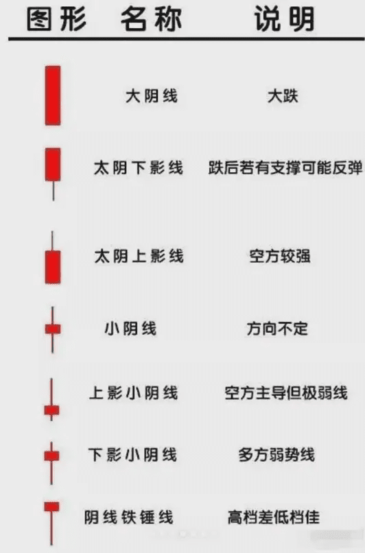 • 下跌趨勢:如果連續出現多個陰線(紅色),且每根陰線的收盤價低於前一根的收盤價,說明市場處於下跌趨勢。