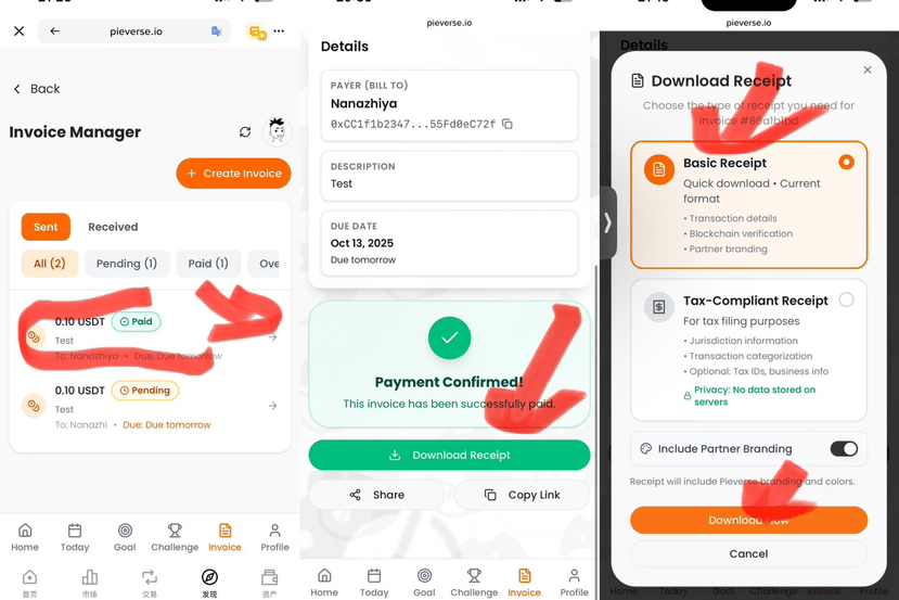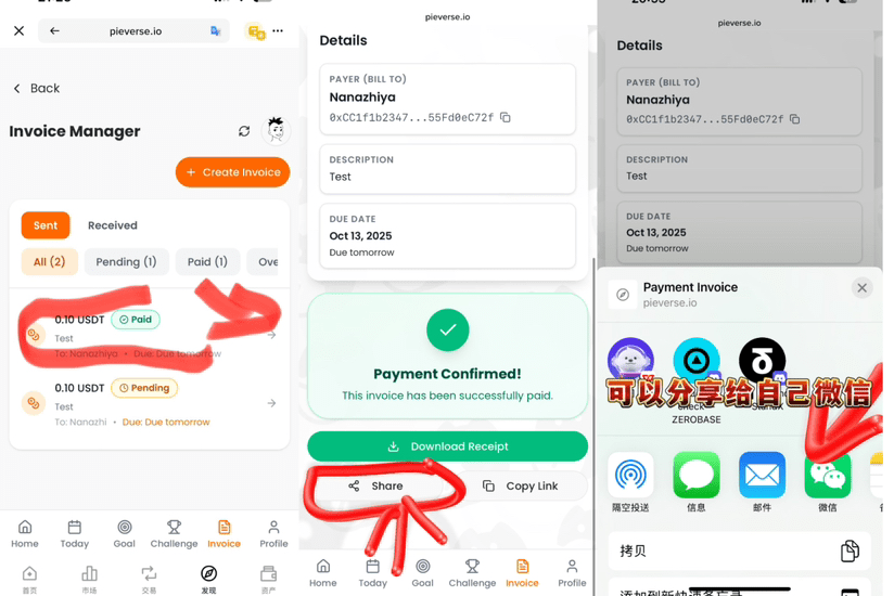 ❹ 創建併發送發票給收款人。付款後 ~30秒確認後,發票狀態變爲“已付款”,就可以驗證了。