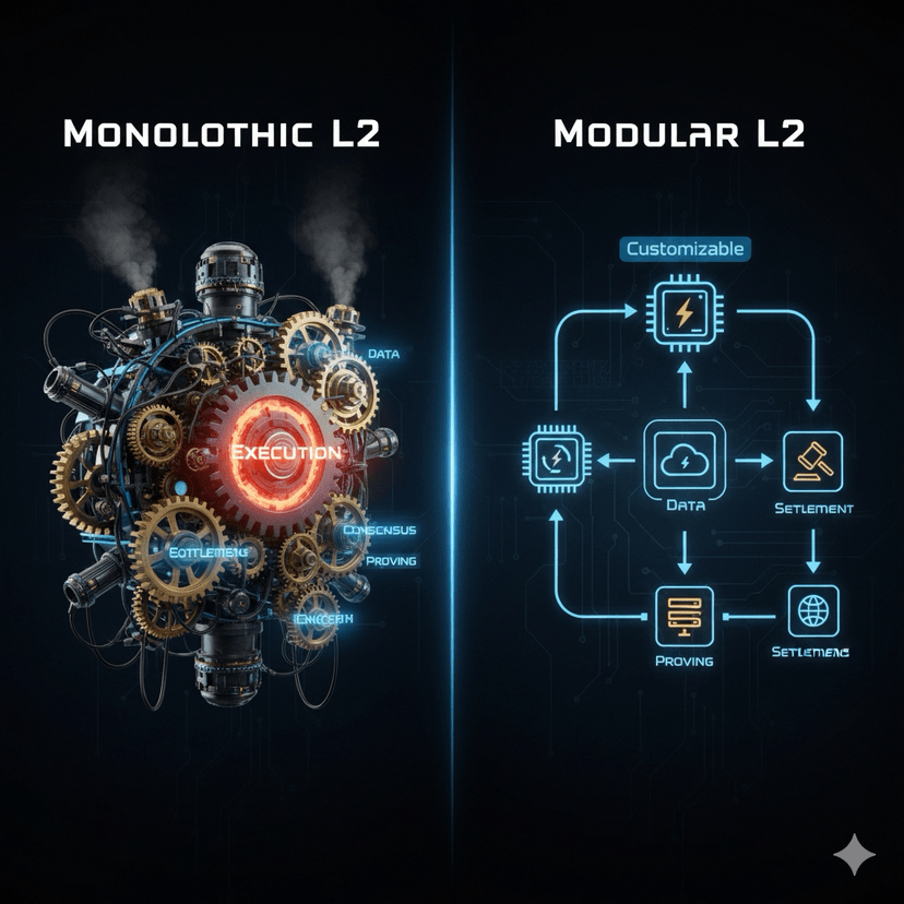 這就是模組化 L2。它不試圖做所有事情。它解耦區塊鏈堆棧,為每個特定任務選擇最佳、最有效和最具成本效益的解決方案。