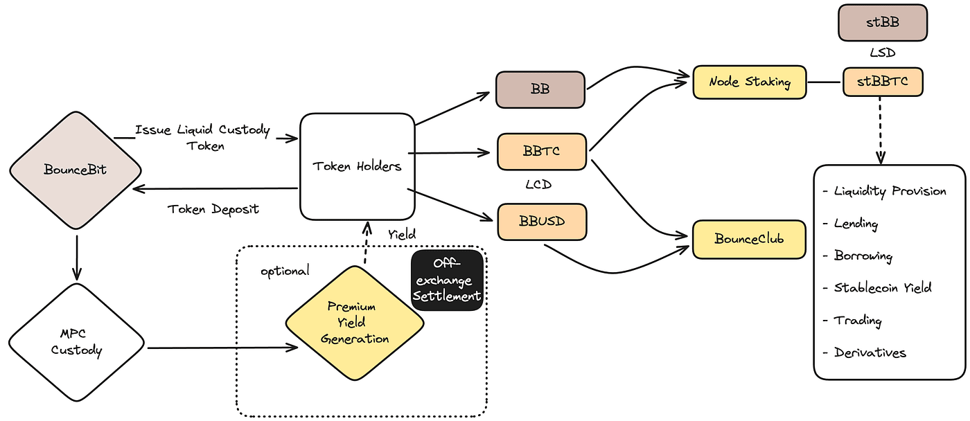 一項關鍵創新是使用流動性保管代幣(LCTs)。當用戶將BTC交給協議(通過受監管的保管合作夥伴)時,他們會獲得可以在BounceBit生態系統中用於再次質押、農業或收益策略的代幣化等價物。通過這些,比特幣的資本變得流動且可組合。