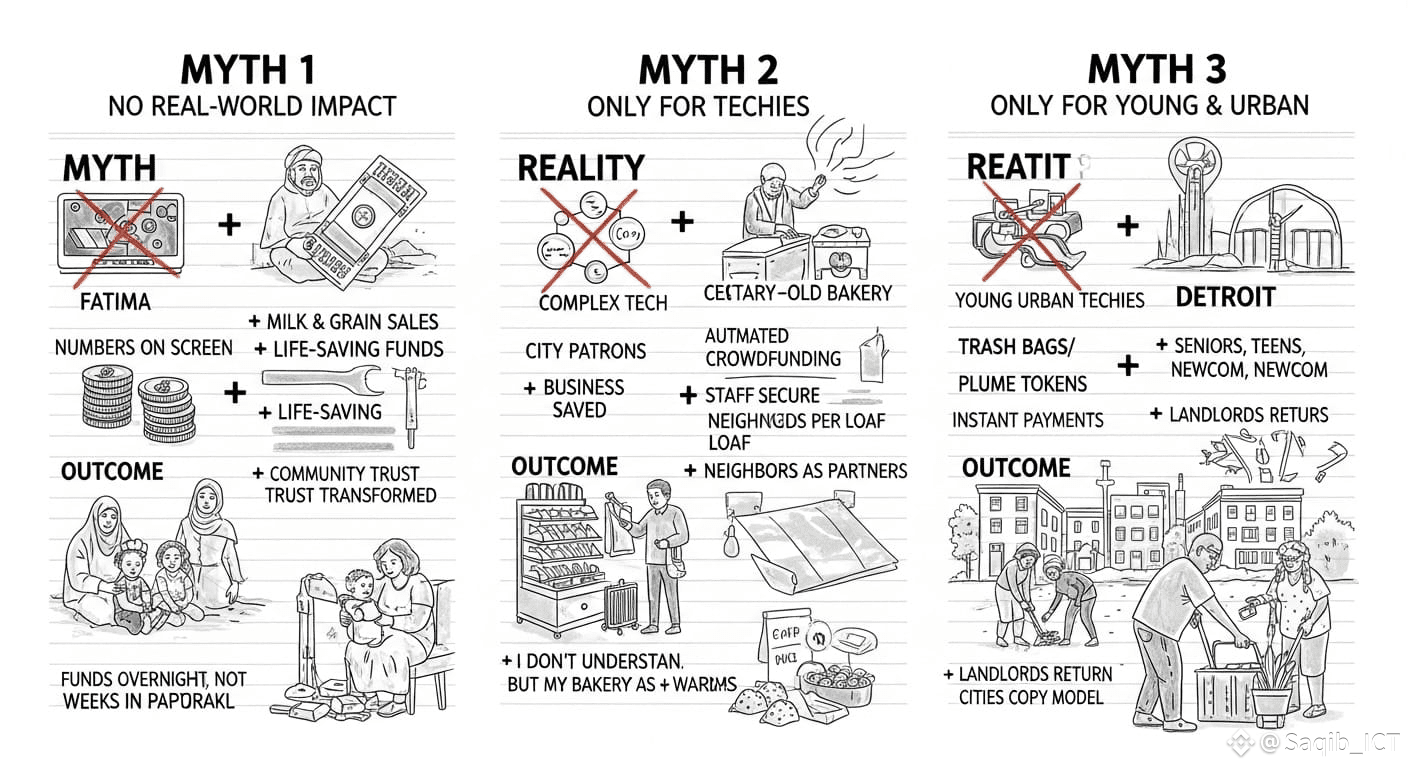 你聽過無數次:加密貨幣只是屏幕上的數字,是賭徒和鯨魚的遊樂場。但這不是法蒂瑪、約瑟夫或綠色街道信託所告訴你的。讓我們揭穿三個最大的加密貨幣神話,每個神話都有來自Plume戰壕的證據。