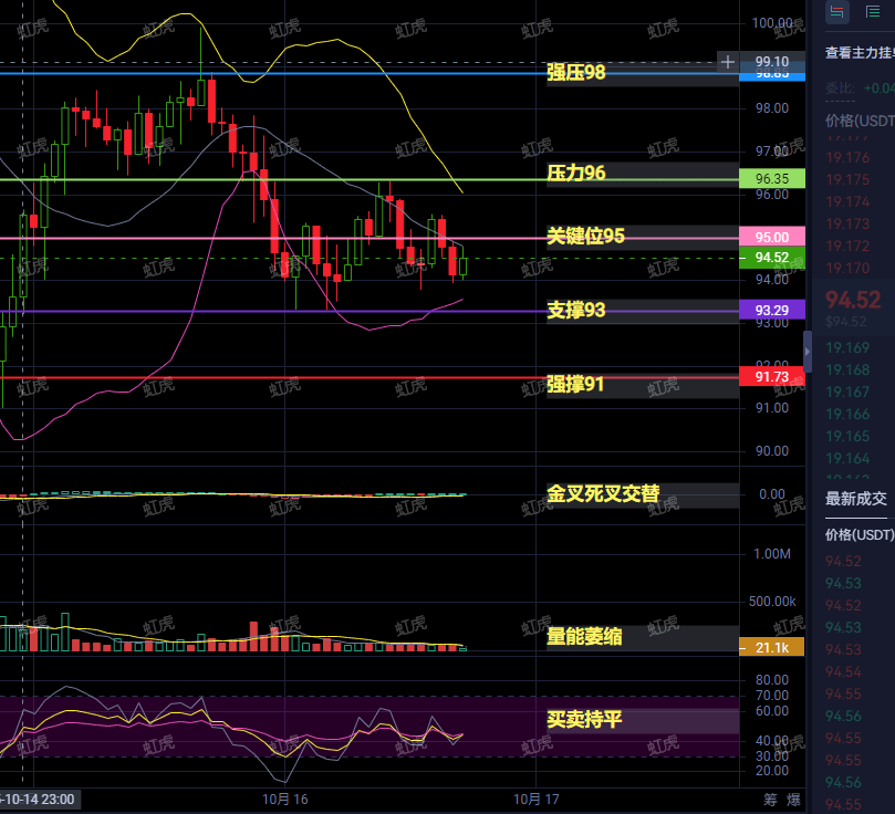 雖然93支撐連續三次未破,但這種弱反彈恰恰暴露多頭乏力。