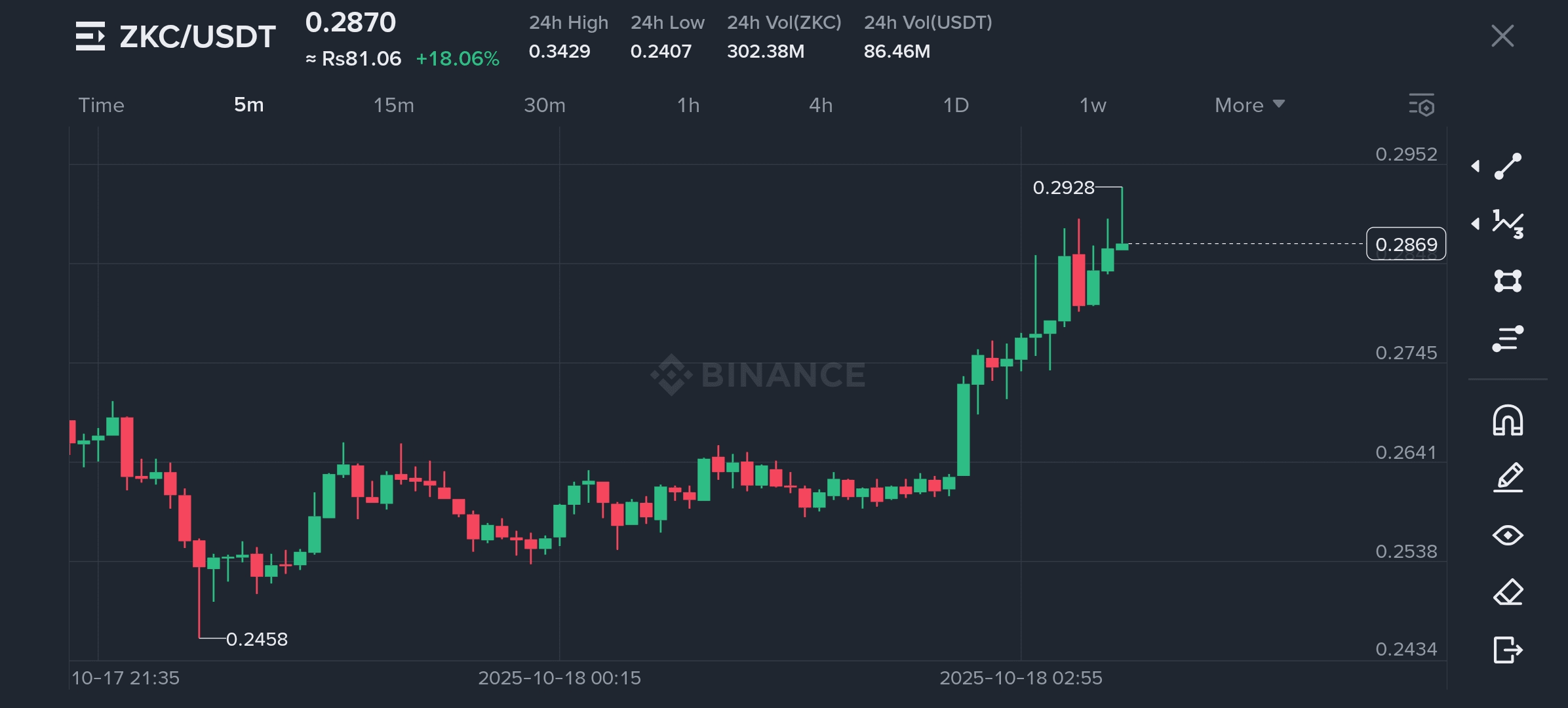 Boundless $ZKC 今天火力全開,2025年10月18日,24小時內大幅上漲63%。交易價格約爲$0.30,這次反彈引起了大家的關注。在本月早些時候經歷了一次艱難的下跌後,這個代幣強勢反彈,顯示出在動盪市場中的真正韌性。