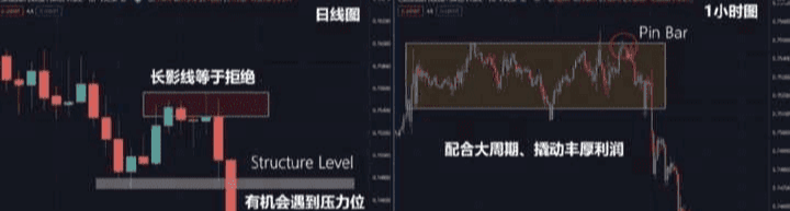 所以,爲了提升交易勝率,我通常會等待價格突破之後,重新回到這個水平的壓力位或者支撐位,等待市場重新幫我測試一次,如果我看到有明顯被拒絕的情況,也就是一條長的K線影線或者類似情況我纔會進場,這樣的做法雖然是比較保守,導致有時候你會錯失一些交易機會,但是這個手法,會比起單憑它突破就進場交易的成功率是高很多的