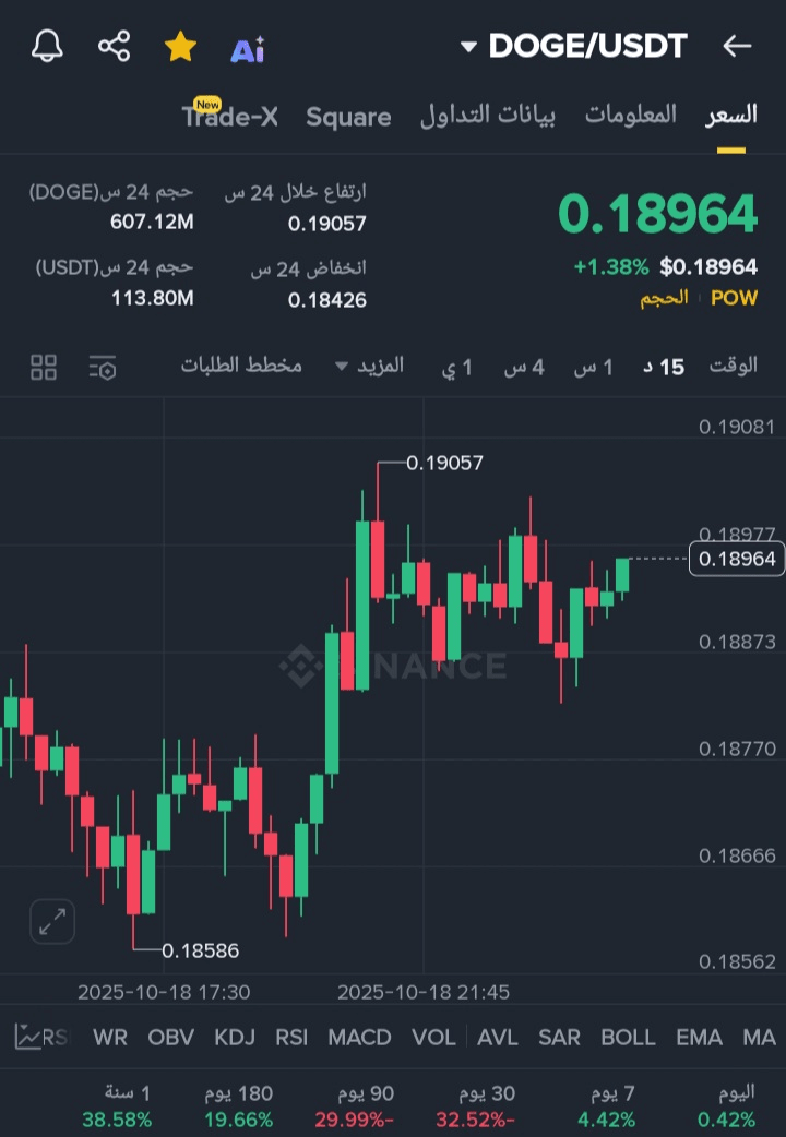 4. 交易量 (Volume): 顯著增長支持當前的購買力量,特別是在價格持續保持在 0.188$ 以上的情況下。
