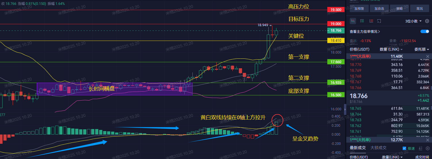 兄弟們,注意!LINK的盤面正在發出一種熟悉的“轟鳴聲”,這種聲音,只在暴漲前夜出現過。