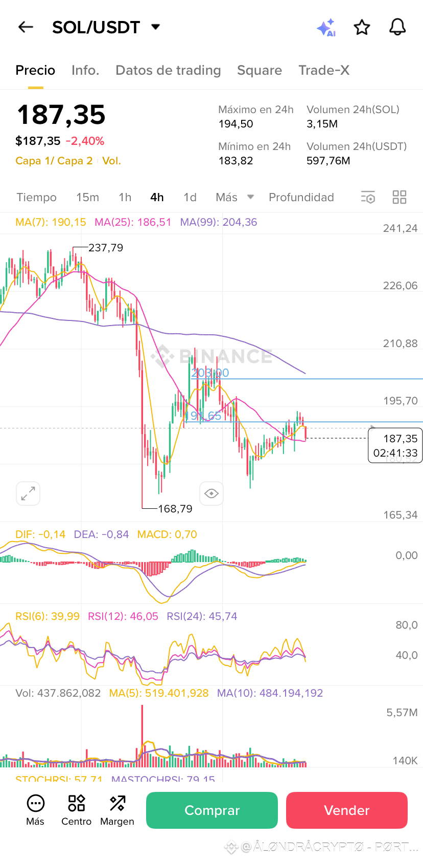 Hoy quiero hablarle de un activo que está robando el show en el mercado: Solana ($SOL). Después de una corrección significativa, SOL se ha estabilizado alrededor de los $193, pero la verdadera historia está en los catalizadores fundamentales y técnicos que sugieren que el próximo movimiento podría ser masivo.