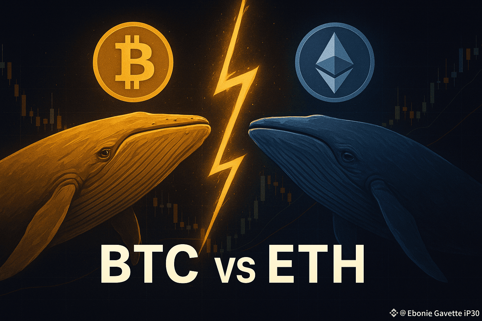 ⚔️ $BTC vs $ETH — The Showdown of the Whales