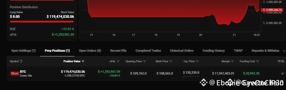 Now, he’s back on the battlefield with a $120M BTC short position (10x leverage) — currently holding a floating profit of $370K.