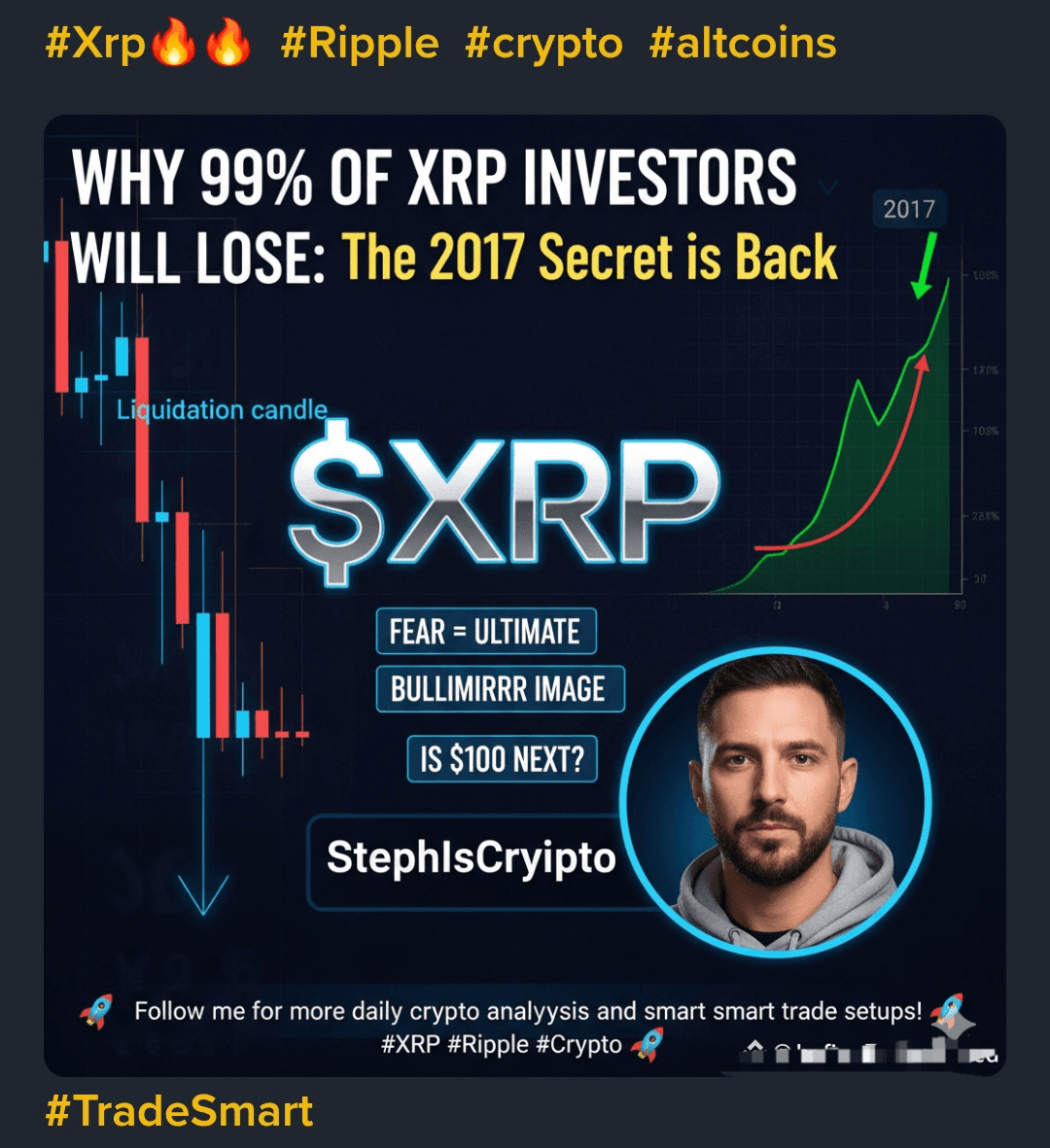 加密專家StephIsCrypto剛剛發佈了一個重大更新 — $XRP chart看起來和2017年牛市之前一樣!😱