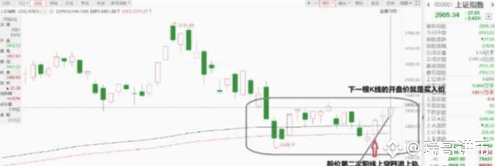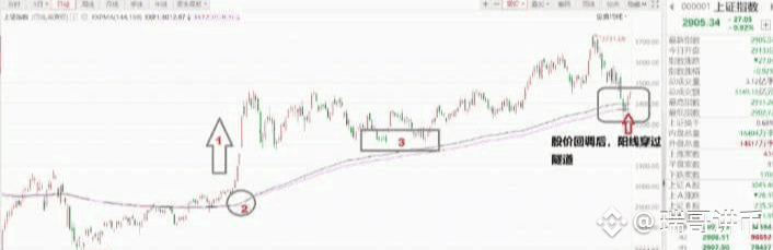 2,股价回落到隧道之内或之下,并再次阳线上穿隧道。