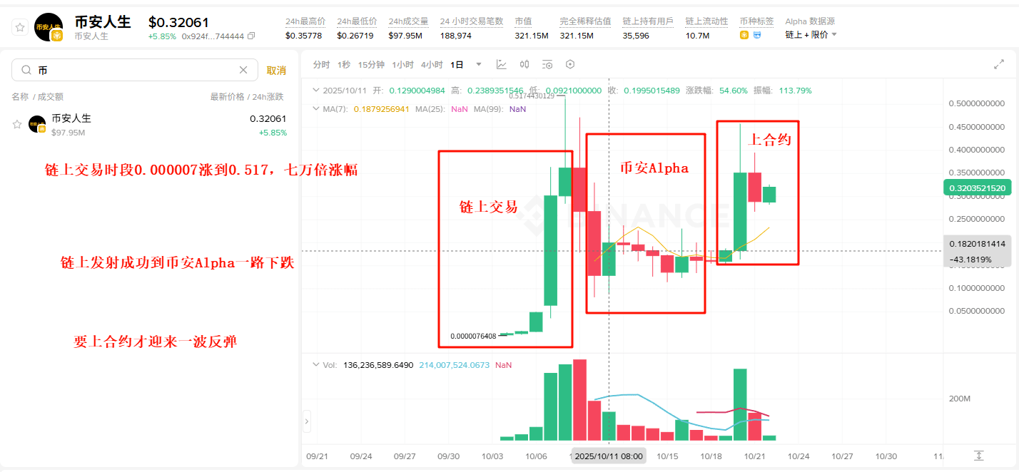 比如幣安人生,如果你在上了交易所買,只會套牢虧損離場。鏈上發射早期買入起碼能夠喫到一波,那也是好幾倍的收益。