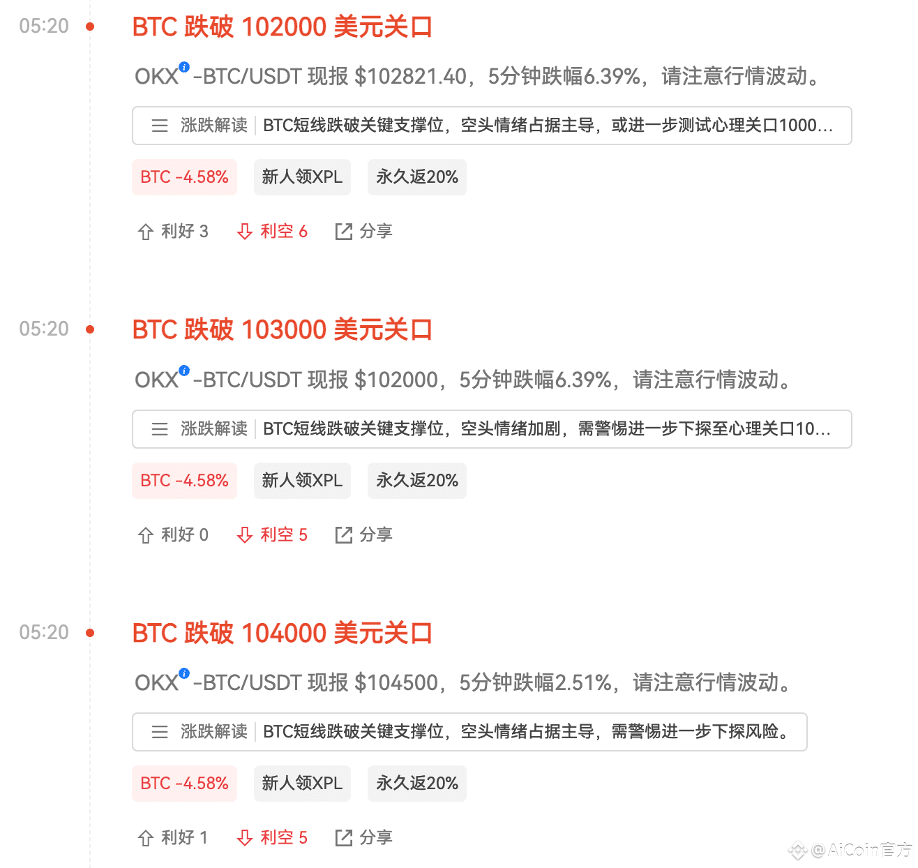 图1:BTC闪崩瞬间(数据来源于AiCoin快讯)