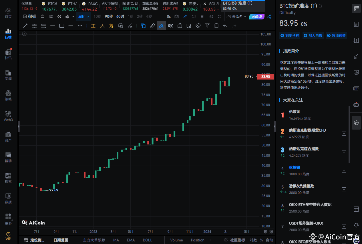 图3:比特币挖矿难度(数据来源于AiCoin 指数)
