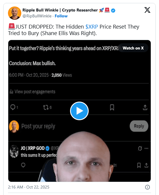 在 X 上發布的一段視頻中,受人尊敬的研究員和 XRP 擁護者 Ripple Bull Winkle 重新點燃了這場對話。他斷言,曾經被視為「投機」的事物現在與與 Ripple 生態系統相關的持續技術和金融發展緊密相連。