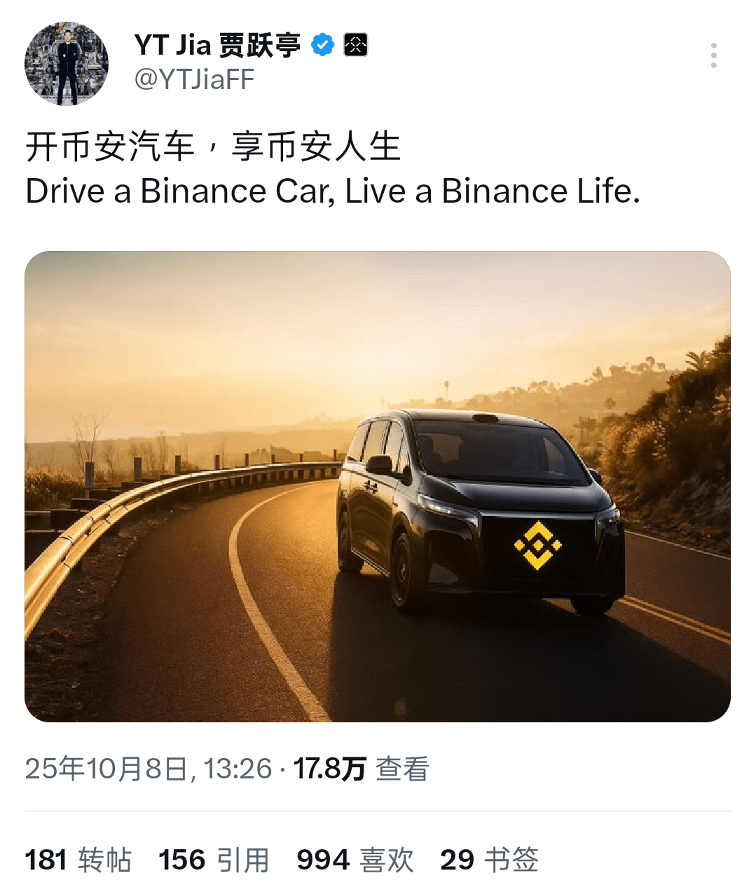 只有當世界和平成爲人類的終極共識,這輛幣安汽車的引擎纔會被點燃。屆時,握上方向盤,即是簽署永恆的和平協議。CA:0x017b22fdeff61724ee94642121799960875f4444