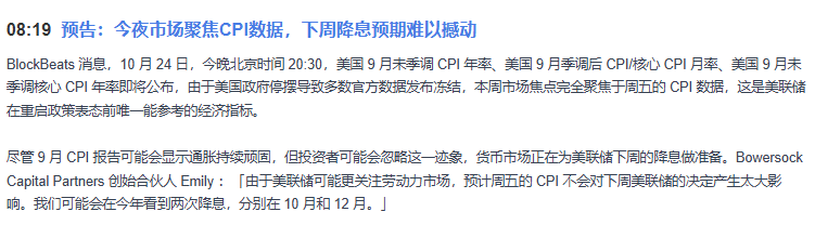 兄弟們,今晚8點半!美國要公佈9月份CPI數據——這玩意兒就是“通脹成績單”,直接決定美聯儲要不要降息!