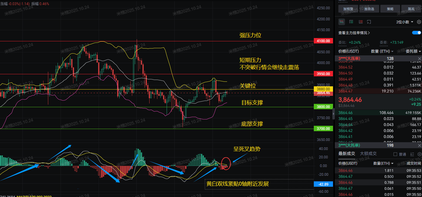 指標信號:MACD死叉欲來未來,黃白線黏在0軸附近,像極了“暴風雨前的寧靜”