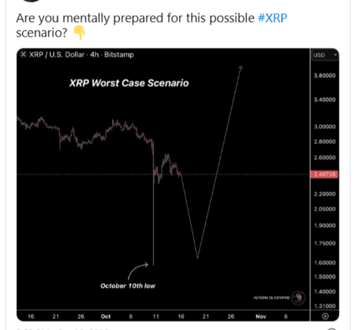 XRP市場再次考驗投資者的耐心和心理。在X上分享的一項大膽新分析中,加密分析師Steph Is Crypto概述了他所稱的XRP的“最壞情況”,在潛在的巨大反彈之前。