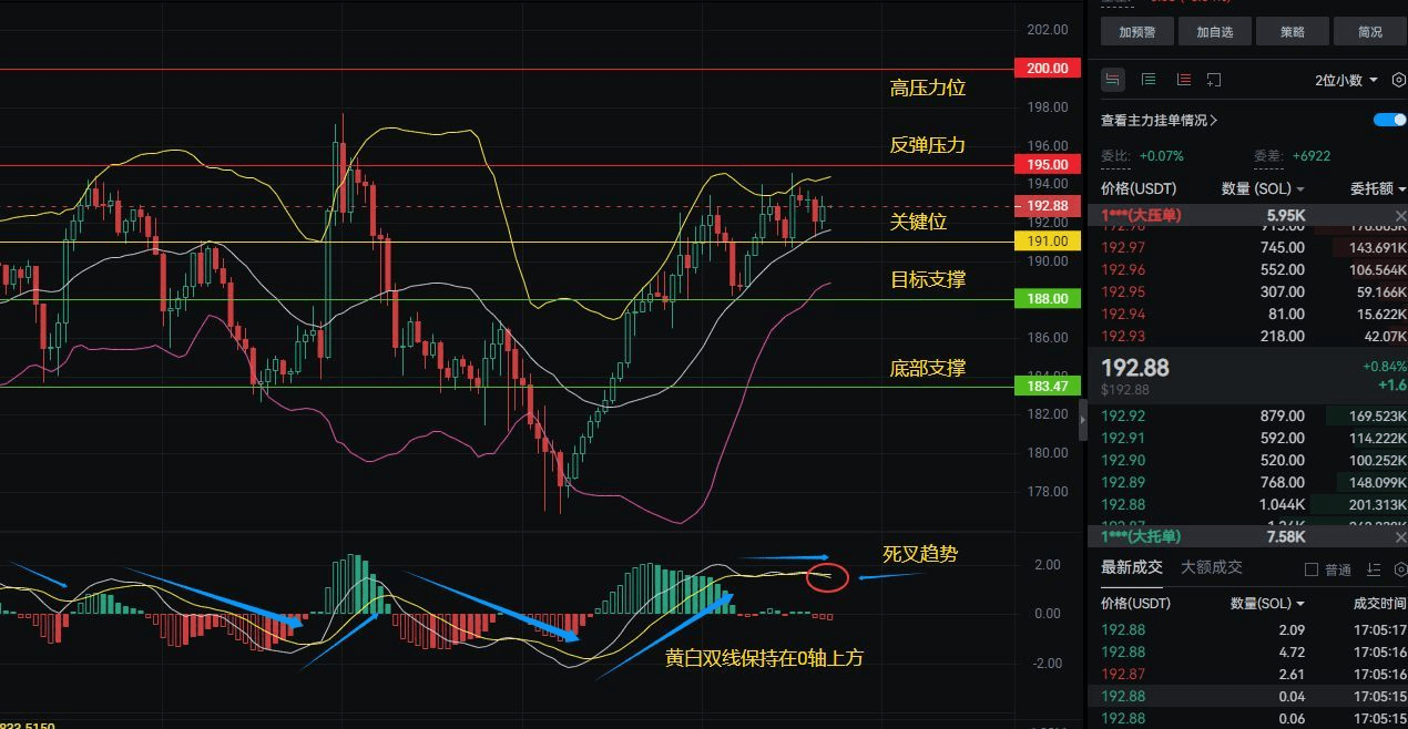 兄弟們,SOL的盤面已經殺紅眼了!現在價格卡在192.88美金這個鬼門關,上一步是天堂,下一步可能是地獄。金築直接甩乾貨,用最腥的口氣給各位拆解行情!