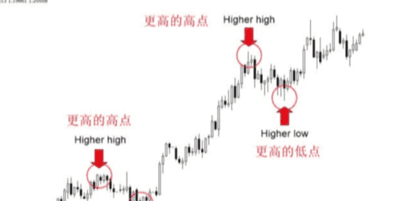 更高的高點和更高的低點,下圖就是一個典型的上升趨勢:
