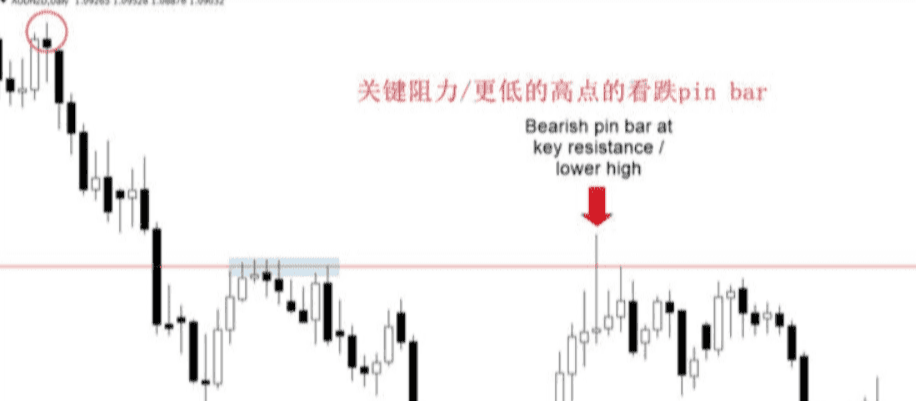 我們可以將圖中的看跌pin bar作爲賣出信號。