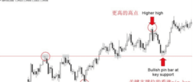 上圖中的看漲pin bar就是一個買入信號,意味着我們可以在市場持續的上漲趨勢中獲利。