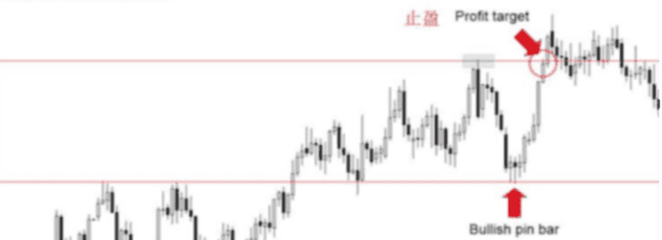 如果市場上出現了上升趨勢,而支撐位上也形成了一根看漲的pin bar,那止盈就設在下一個關鍵阻力位。