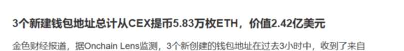 資金面:僅 3 小時,3 個新錢包收到 58,384 枚 ETH(約 2.42 億美元),很多人第一反應是“大戶抄底”。