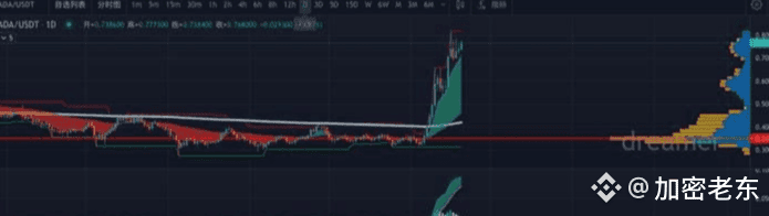 分析:艾达币(ADA)是Cardano的原生代币,和以太坊一样,Cardano目标要成为一个能承载海量商业级应用的基础公链。论资历,艾达币绝对算得上是一个老币种了,但它的争议却很多,Cardano目标宏大,但技术开发进展过于缓慢,一直为人诟病并且开发团队的嫖娼黑历史和挪用公款的江湖大忌,在熊市团队直接摆烂开发停滞不前让很多寄以厚望的KOL和资本撤退,币价跌入谷底,不过僵而不化都是老链的臭毛病,一有活水(资金)他又能给你动弹几下,流动性质押,智能合约,Dapp,去中心化治理别人有的他也给你装上了,慢慢的Cardano 生态系统展现出蓬勃发展和创新的景象,价格也在慢慢回稳中。