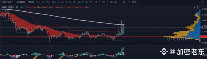 分析:SAND是Sandbox游戏平台的官方代币,旨在打造一个虚拟世界,让玩家可以自由创造、拥有和交易虚拟资产,是元宇宙版块的龙头,在上波牛市中元宇宙(NFT)带动了一波流量,Play to earn的模式让游戏和NFT走进了加密投资,SAND 允许玩家购买装备、定制游戏角色并参与其他游戏领域。创作者使用SAND 为他们设计的游戏获取不同的土地和资产。购买这些功能的SAND 需求由销量决定。艺术家使用宝石作为一种方式defi稀有性或稀缺性,然后将SAND 花在他们在市场上发布的资产上。玩游戏赚钱也让疫情无收入的群体有了生活来源,游戏和艺术(元宇宙+NFT)作为加密一块非常大的市场,在牛市的时间里也有其出彩的时刻。