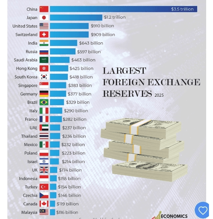 讓我們來看看世界上最大的儲備持有者以及他們如何塑造2025年的金融格局。