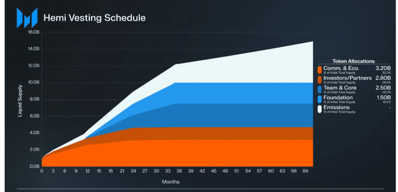 安全不僅僅是機械。它是文化。Hemi在兩個輪次中籌集了3000萬美元,並列出了名稱。它說明了代幣生成事件發生的時間以及當時大約9.8%的供應量開始流動。它列出了100億初始供應的分配。32%分配給社區和生態系統。28%分配給投資者和合作夥伴。25%分配給團隊和核心貢獻者。15%分配給一個基金會。它表示,每年的排放將保持在3%到7%的範圍內,以支付編寫錨點和運行引擎的工作。當一個網絡把這些細節視爲日常事實而非營銷選擇時,信任就有了依附的基礎。