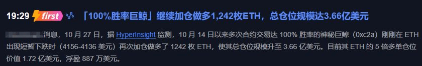 今天幣圈炸了個大雷——有個100%勝率的神仙巨鯨又出來搞事情了!