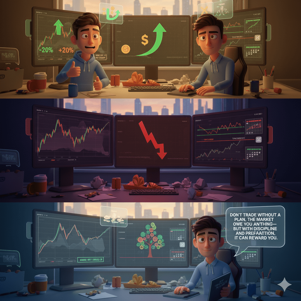 一天早上,在又一次虧損交易後,Mohsin終於停下來問自己:“我到底做錯了什麼?”他意識到自己從未真正制定計劃——沒有止損,沒有獲利了結,沒有明確的策略。他是在希望中交易,而不是根據規則。