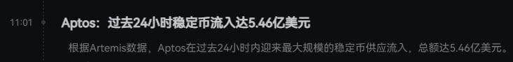 先給你們看個狠數據:就在剛纔,Aptos那邊傳消息,過去24小時穩定幣流入直接幹到5.46億美金!啥概念?穩定幣就是幣圈的“現金”,現在這麼大規模往市場裏衝,就像賭場突然搬來一卡車籌有人要開始梭哈了!