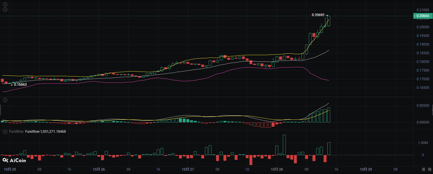 Aptos這種公鏈都能被大資金盯上,同爲公鏈的HBAR能沒動靜?別急,資金永遠是逐利的,現在市場上最饞的就是“低位補漲”的硬骨頭。HBAR最近從0.18刀爬回0.2刀,漲幅9%,就是資金在試探。但這試探,是狼來了前吹的風,還是真要撕咬的信號?接着看技術面。