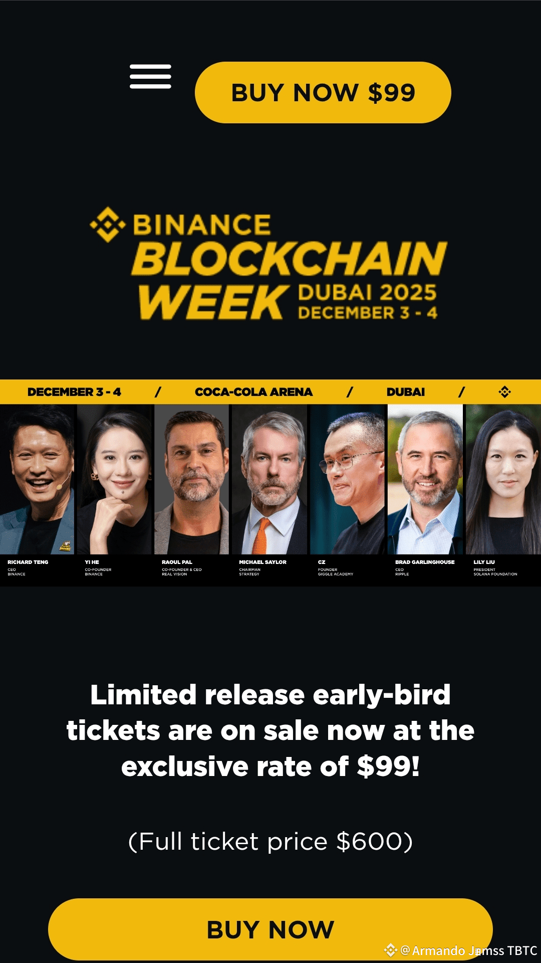 Ready for some good news? 🎉 Binance is offering limited early-bird passes for just $99, a massive discount from the regular $600 ticket price. This exclusive offer opens the door to: