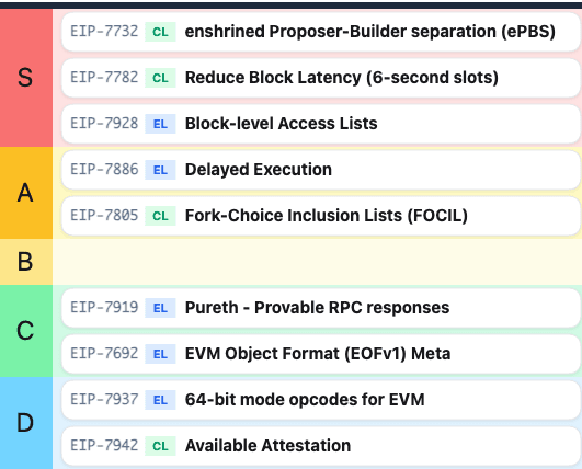 Glamsterdam強調“時間縮短”。核心EIP-7782將區塊時間從12秒減少到6秒,旨在減少交易延遲,爲鏈上DeFi交易和高頻策略帶來顯著升級。結合EIP-7928的區塊級訪問列表用於節點管理,減少帶寬消耗。