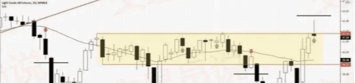 隨後,價格的走勢表現出明顯的區間波動行爲。在圖表上標出該區間的高點與低點,可以幫助我們避免進入那些很快就反轉的交易。