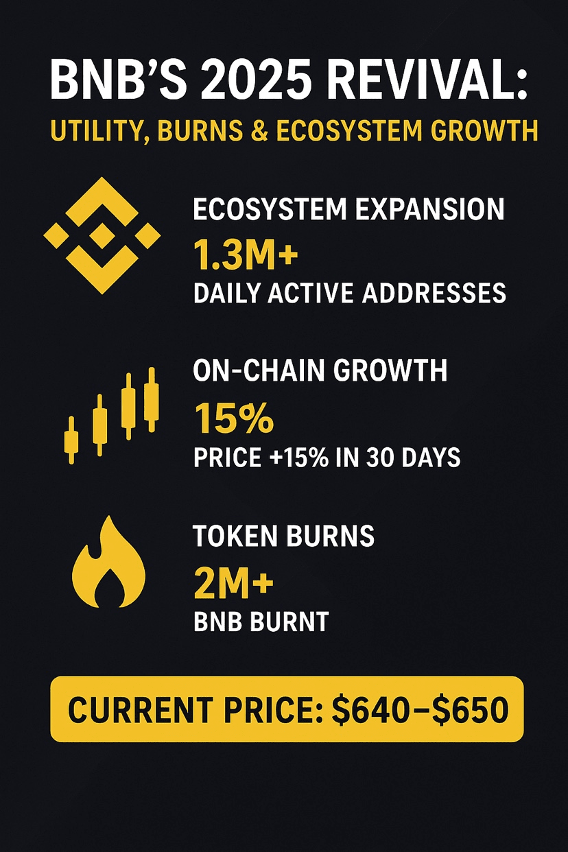 BNB 目前交易價格在 $640–$650 之間,過去一個月上漲超過 15%。