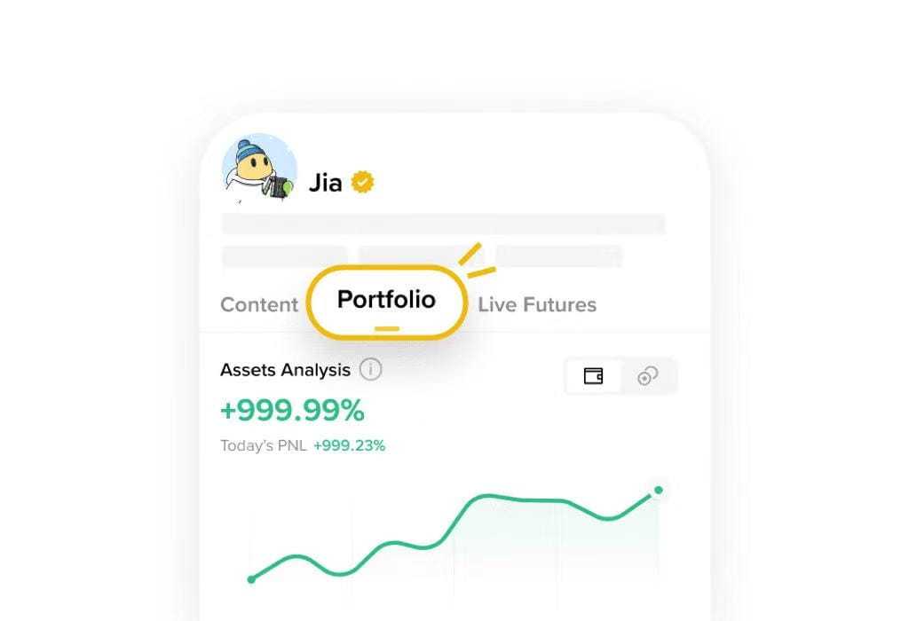 可以展示盈虧百分比、資產配置、交易勳章等,
