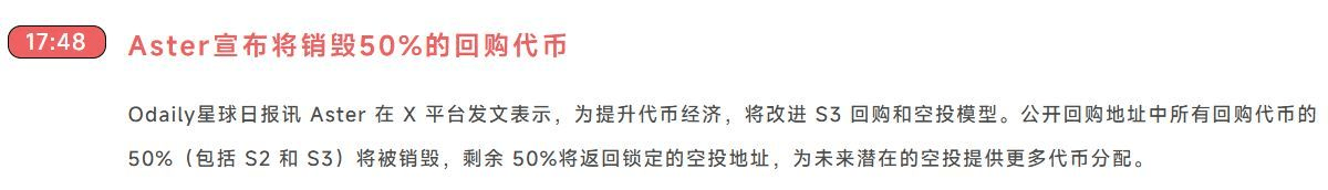 Aster官方在X平臺正式宣佈:把之前回購的代幣的50%直接銷燬,剩下50%鎖起來留給未來的空投!