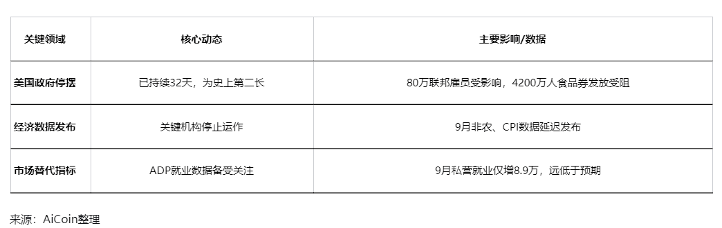 經濟數據黑洞中,美聯儲的每一次猶豫都在加密貨幣市場掀起血雨腥風。美國政府停擺已持續32天,創下歷史上第二長紀錄,這場政治僵局正在演變爲一場全面的經濟數據危機。